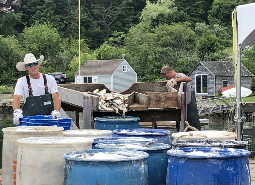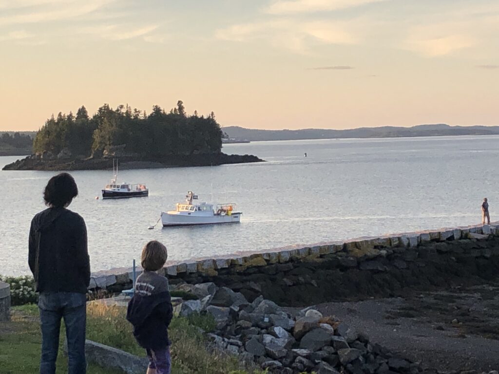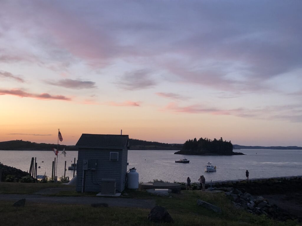 It was a release from the everyday order, a time for chance and an outside world I didn’t know to break in. I got to renew the language of fish and fishermen that I use in languages I barely speak – international fishmonger lingo. All those crusty lobstermen, dipping their catch in salt to make bait for the lobster catch. Tiny islands that look like the heads of seals as they appear and disappear. At land’s end, in the easternmost part of the US, the light was equally teasing – there, barely there, so thin and transparent it made everything within its reach slightly magical. Light itself is invisible, though we tried to capture the zinc gleam on the mudflats at dusk, the streaky pink glimmer of oyster shell in the sky at sunset.