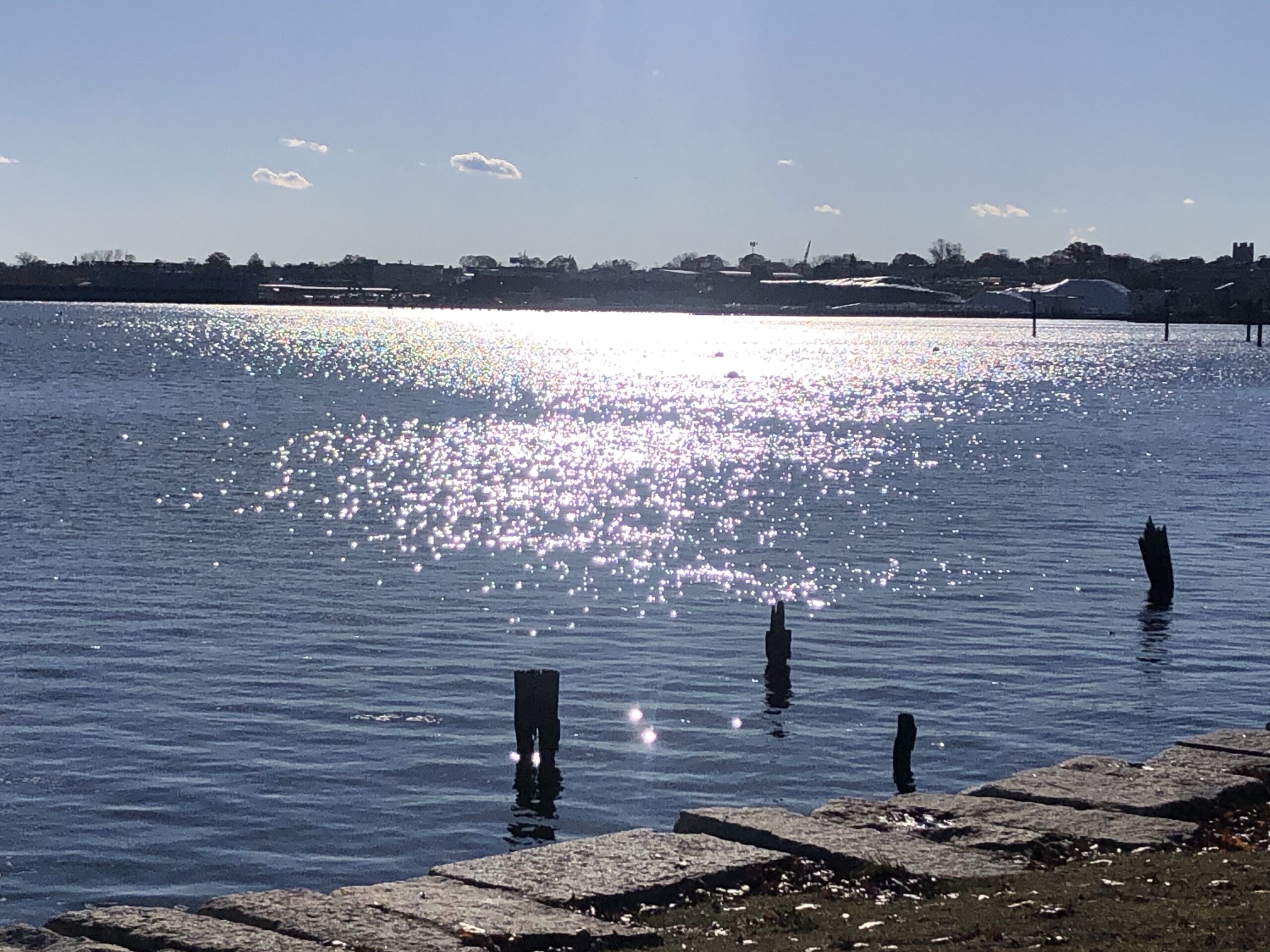 scatters itself across the water.
